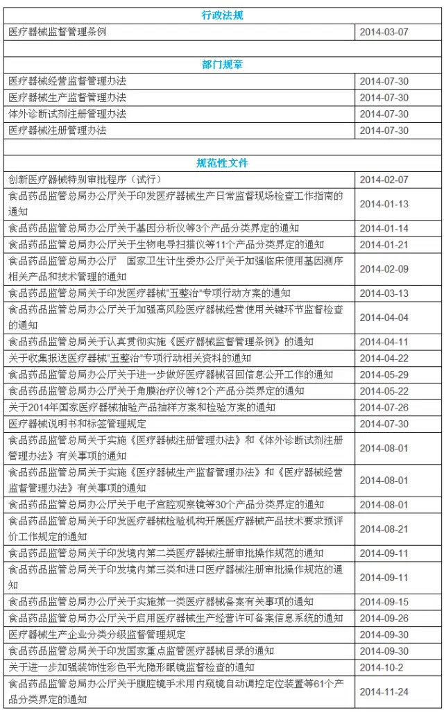 2014年中國醫(yī)療器械重要法規(guī)匯總